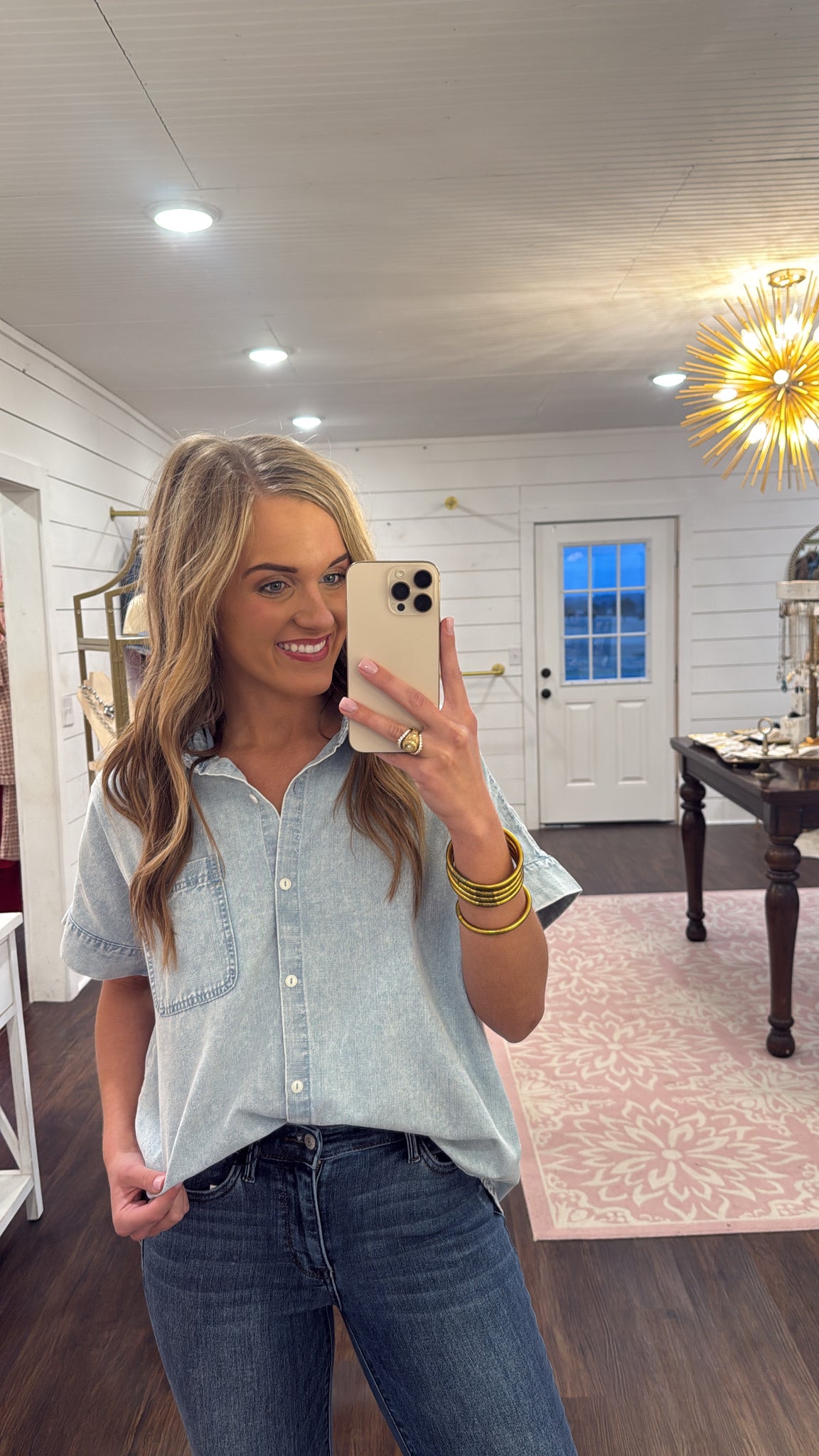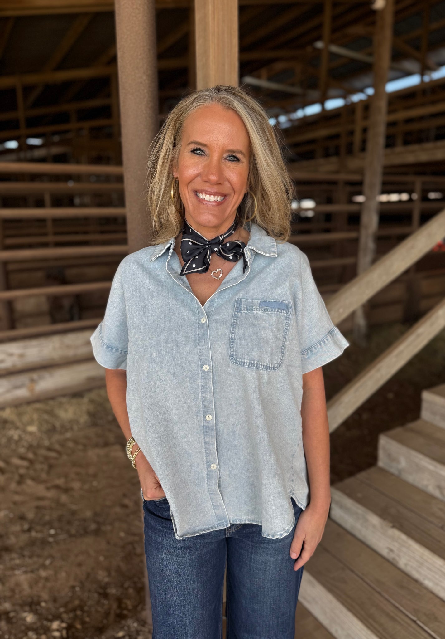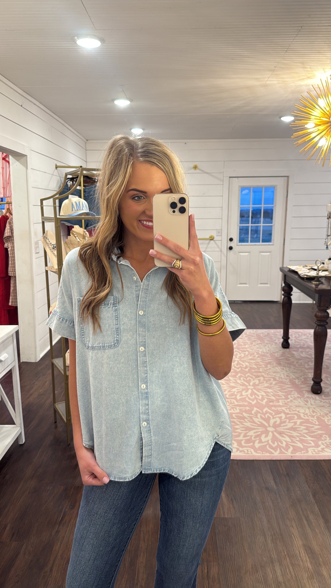Jenny Light Wash Denim Gathered Top